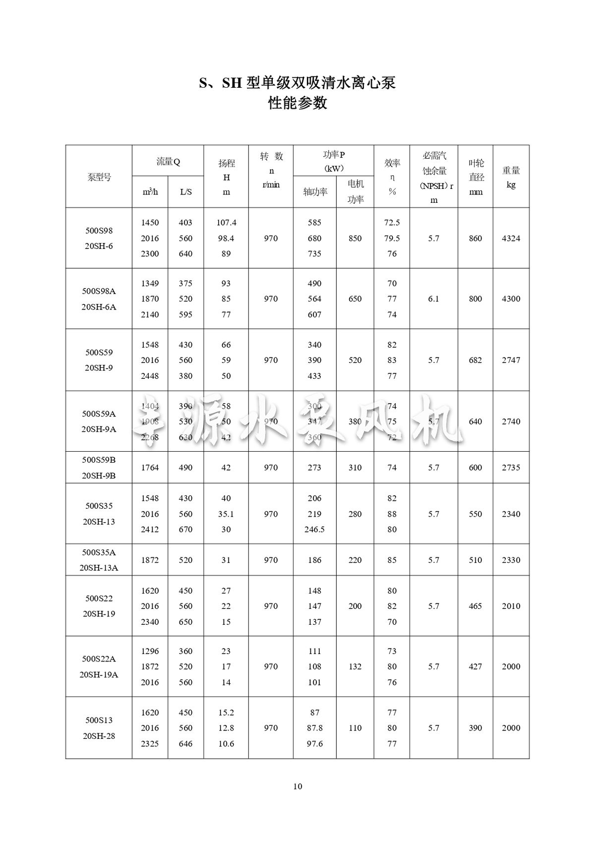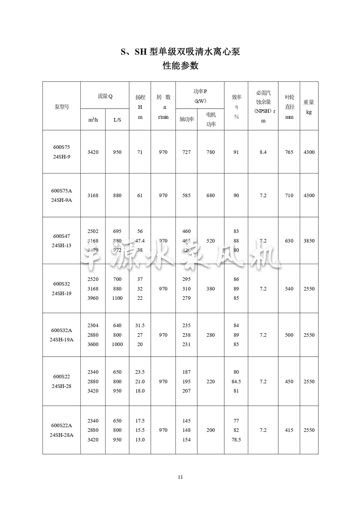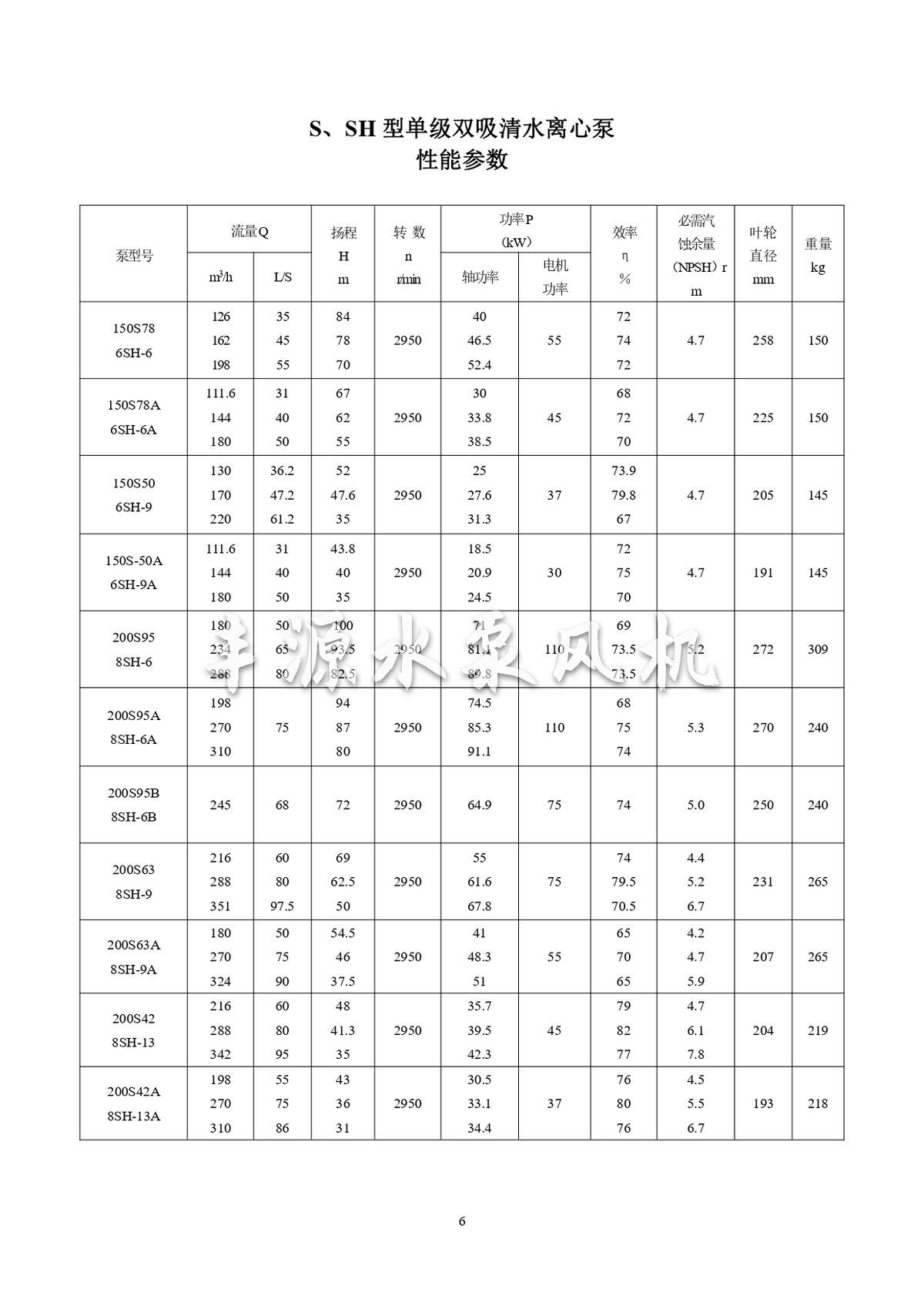 S,SH型單級雙吸清水離心泵